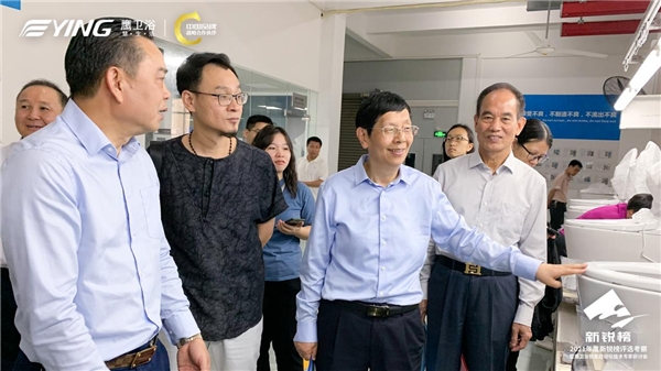 专家组一行在戴总的陪同下参观了鹰卫浴佛山生产基地与重点了解鹰卫浴自主研发的高压连体创新技术——智能连体四模高压生产线,还不时驻足观看鹰卫浴各生产环节细节,了解佛山基地在绿色发展、产品研发、产品工艺、生产技术、质量把控、推广效果等方面的情况,同时与在场鹰卫浴高层领导进行深入交流,并给予专业评价与建议。