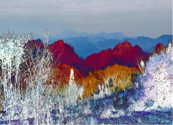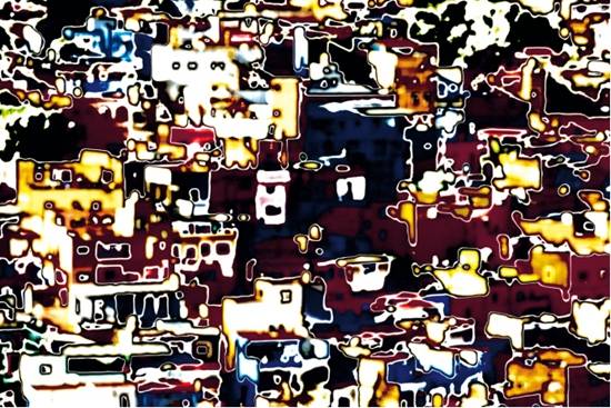 太阳把光反射到地球上时,光已经穿过了数不清空间的物质。光在空间与同一种物质碰撞时,因物质所处的空间位置不同会产生不同的光效,在与不同的物质碰撞时也会产生不同的光效。也正是如此,我才能够从任何一张照片中分离出不同的光色,并且还能够从这张照片中裂变出数不清的色彩所形成的结构图案。这就意味着,人们可以从空间的信息中分离出不同的色彩,可以从光图中裂变出不同色彩所构成的图案。从空间取出光效形成的图案是取之不尽用之不竭的,只要有光,就可从不同的物质上分离和裂变出不同的光效图案。